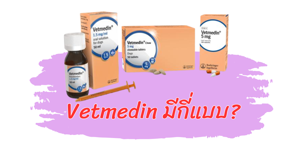 หลายๆท่านที่มีน้องหมาน้องแมวเป็นโรคหัวใจและวินิจฉัยโรคแล้วว่าเป็นโรคหัวใจที่สามารถรักษาด้วย Vetmedin ( pimobendan) ได้ อาจจะเคยเห็นยาตัวนี้แค่ตามขนาดที่สัตวแพทย์สั่งจ่ายมาให้ โดยขนาดที่สัตวแพทย์นิยมใช้จะเป็น Vetmedin 5mg และขนาด 1.25mg ที่เป็นแบบเม็ด โดยบริษัทที่ผลิตยา Vetmedin ได้ผลิตยาตัวนี้ออกมาให้หลายรูปแบบเพื่อให้เหมาะสมกับการใช้งาน โดยถ้าแบ่งตามลักษณะยาสามารถแบ่งได้เป็น 3 ประเภทดังนี้